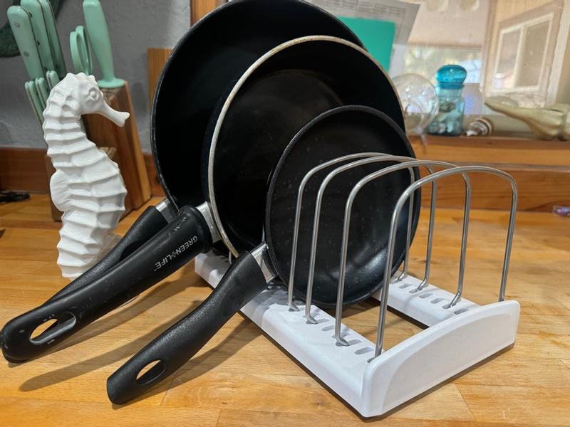 Such a simple yet helpful little rack. This cleared up so much space in my pots and pans area. I have it holding all my lids and it’s actually quite flexible as well