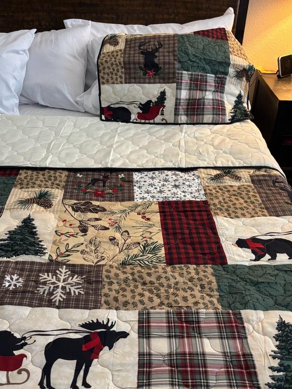 I absolutely love this quilt set. I can’t wait to use it at the cabin for the holiday’s! The material is super soft and very durable. It fits perfectly but I do wish that it was a little bit longer to cover more of the sides of my bed.