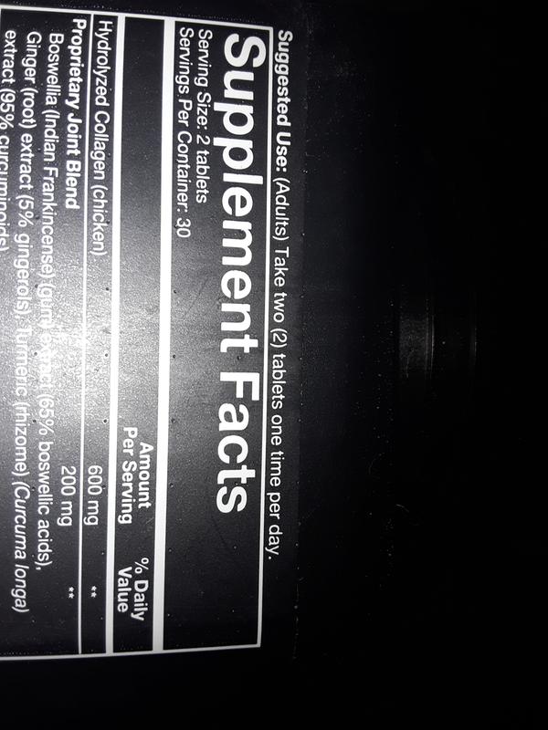 I never really trust a joint complex. Maybe I'm not old enough to have knee problems to feel it working, but mostly consider these things all placebo. Healthy diet and exercise should be enough in my opinion, and I'm not a power lifter, so I don't know. I've only taken half the bottle. Maybe after the whole thing, I will notice something. But how do you quantify results with your joints?? Not gonna knock or promote the product either way. I lift three times a week, and don't overdo it.