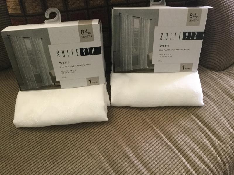I received the Yvette 52x84 white curtains and we installed them over the door of our patio. They are white and stylish. The feel of the fabric is not great. It does not feel natural. But the curtains are nice to look at. They are transparent so they do not block out light but diffuse it down and afford a bit of privacy which is what we needed. The curtains do not come with any fittings and one needs to buy all that is required. I'm satisfied with the purchase. Would have loved them if the feel of the fabric was better.