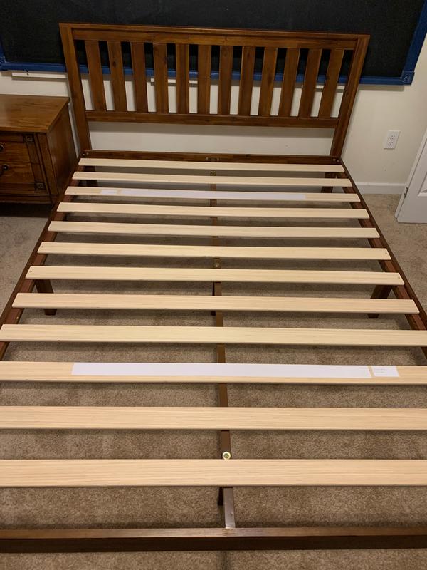 This was the first of two zinus bed that I have assembled. I honestly don't think I will purchase a bed from another company. I feel like I have ripped off the company by getting it so cheap. This bed frame is worth double or triple of you buy it retail. The wood pieces fit together snugly with and had no room for the bed to be unsteady. Both beds have come with a small ratchet for the allen wrench bolts that sped up the process incredibly. This bed in particular had double sided tape pieces on the slats to stop the mattress from moving. It was easy to put together, it is sturdy as hell, and looks amazing. 10/10 would purchase again in a heartbeat.a
