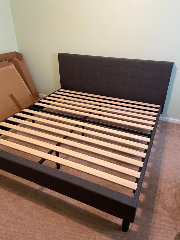 I recently purchased the Zinus Shalini Upholstered Platform Bed Frame and it has been an absolute game-changer for my bedroom! Here's why I'm loving it: 1. Sturdy and Reliable: Right off the bat, I noticed how robust this bed frame feels. The combination of the steel frame and wooden slats means it doesn't squeak or wobble - a big win for me as I toss and turn quite a bit in my sleep. 2. Elegant Design: The bed frame's dark grey upholstery looks so chic and sophisticated. It transformed my bedroom from 'meh' to 'wow' instantly! The diamond pattern stitching adds a touch of elegance that I absolutely adore. 3. Comfort Is Key: I was a bit skeptical about not needing a box spring, but the wooden slats provide excellent support for my memory foam mattress. It's the perfect balance of firm and comfortable. 4. Easy Peasy Assembly: I'm not the most DIY-savvy person, but assembling this bed was a breeze. The instructions were clear, and all the tools and parts were neatly packed in the headboard compartment. It took less than an hour to put it together, and I did it all by myself! 5. Perfect for Small Spaces: The under-bed clearance is a lifesaver for extra storage. I managed to neatly tuck away my seasonal clothing and spare bedding, freeing up so much closet space. 6. Excellent Value: For the price, the quality of this bed frame is outstanding. It feels and looks more expensive than it was, which is always a pleasant surprise. 7. Great Warranty: Knowing that it comes with a 5-year warranty gives me peace of mind. It's always great when a company stands behind their product. Final Thoughts: If you're on the fence about the Zinus Shalini Bed Frame, I say go for it! It's stylish, sturdy, and has given my bedroom the cozy upgrade it needed. Plus, the extra storage space is a bonus. Highly recommend!
