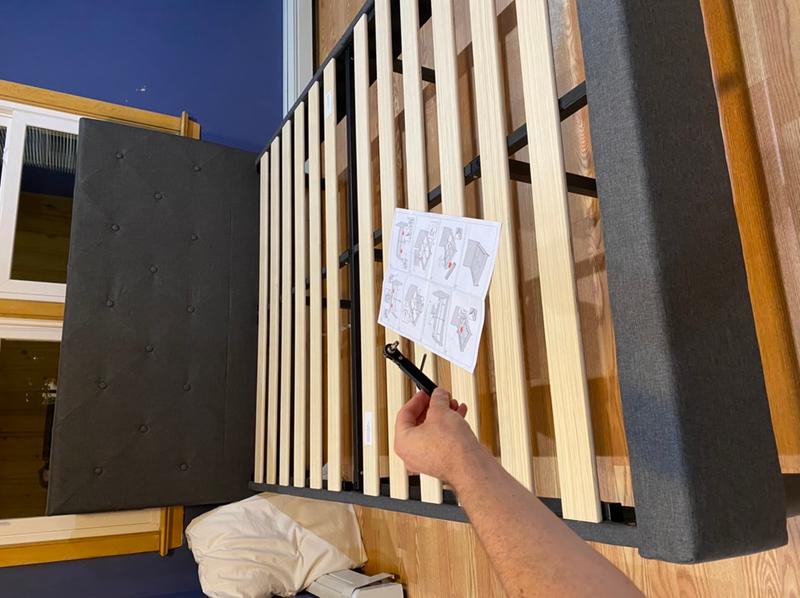 So far, I love this bed frame! It wasn't difficult to put together, looks great, and I love that the headboard acts as storage! That's where I put the specific tool sent to put this bed together, which I knew I would lose!