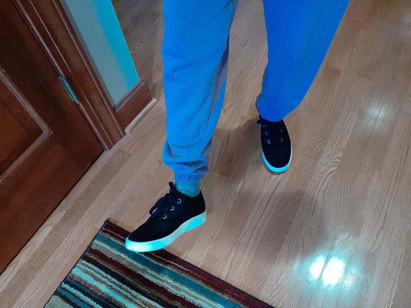 Comfortable fit and I like this blue design on them. They are great for walking. My only issue is my socks kept coming off in the shoe. I don't know if this is happening to others as well.