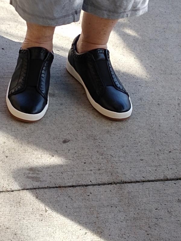 I love these Zodiac Jimi slip and on sneakers. They are made from a soft leather making them comfortable and not too stiff. The back part (near ankle) is lined with suede. The thick elastic in place of laces makes slipping these on very easy. The design is classic and can be dressed up or down.