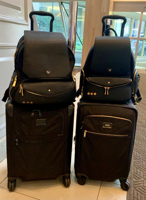 …for my Tumi! Love how the strap on the back of my Little Zoe secures my backpack on top of my roller board! Also, the detachable clutch made traveling light easier for a short business trip! Love a bag that’s both fashionable and functional!