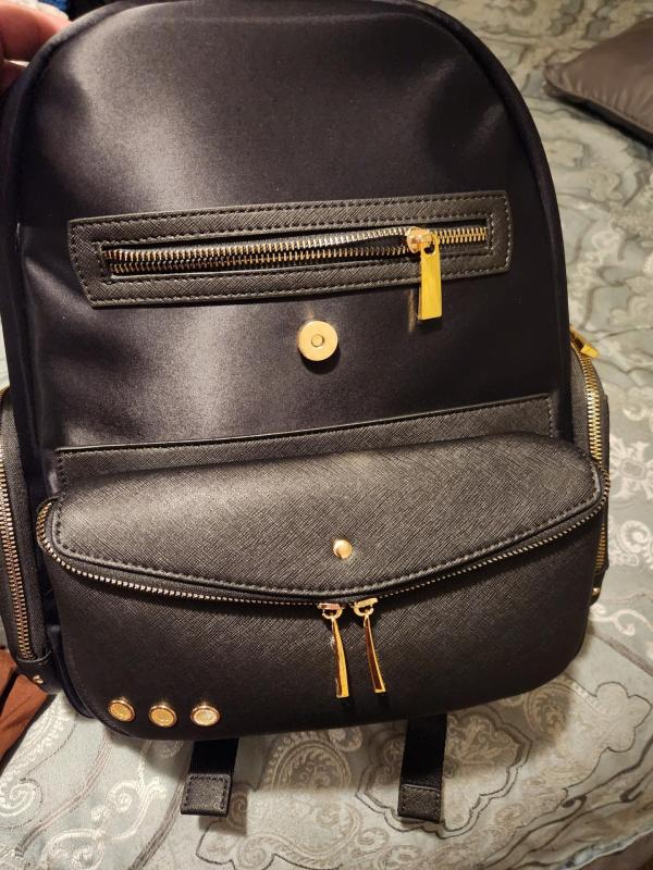 I love that this backpack has gold hardware with multiple pockets. I can fill it with work and school materials and it doesn’t look bulky.