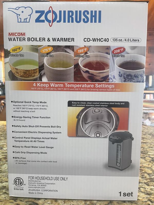 I have 18 year old Zojirushi water boiler so decided to replace it. This new unit absolutely feel less quality as the old one. Very bad insulation as the upper outside feel hot when touch. This is not a good replacement even my old one is 18 year old.