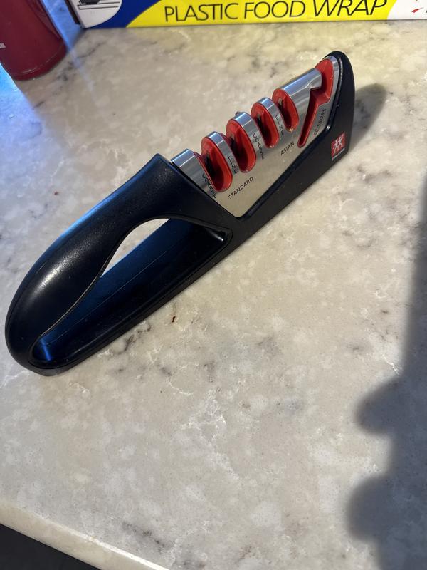 I really appreciate having three types of blade sharpener with this device…standard, Asian and scissors. Great price for what seems like a great product so far. This is essential for keeping my knives in the same condition as when they arrived.