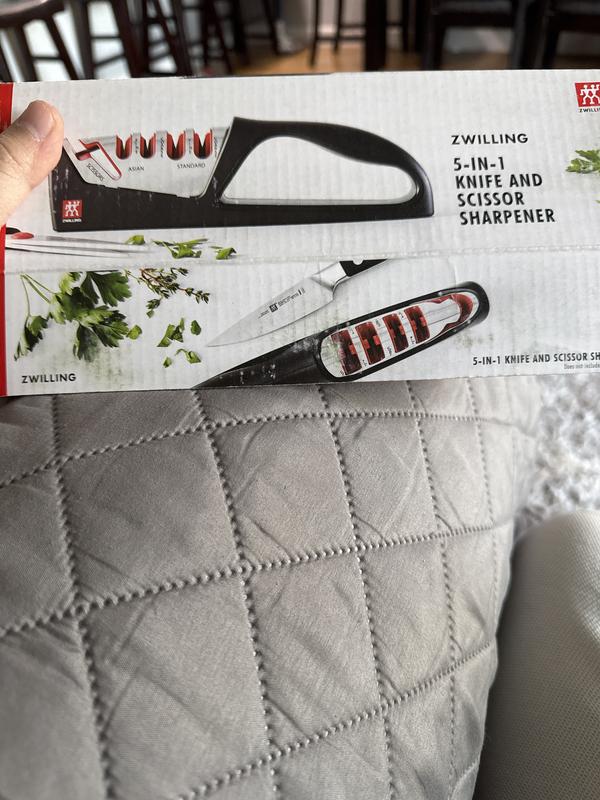 It makes sharpening my knives AND SCISSORS a breeze! I truly appreciate the quality of the product and how sharp my knives are. The price point is perfect!
