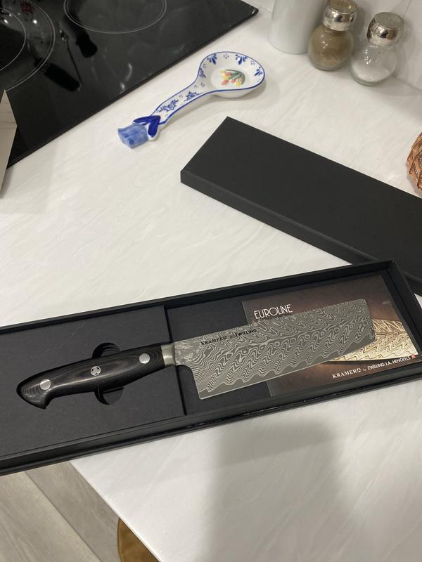 Beautifully crafted and wonderful to use. It sits well in the hand and cuts effortlessly. The beauty of the knife makes using it an art form instead of a food preparatory effort.