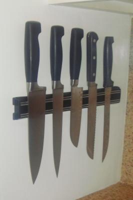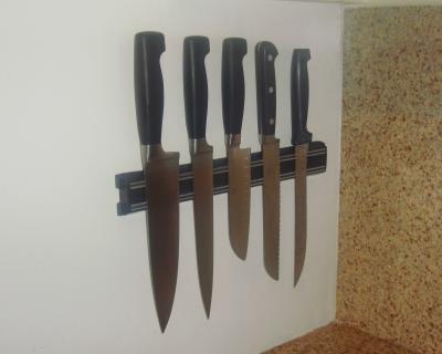 This magnetic bar is easy to install. The magnets are strong hold my knives securely.