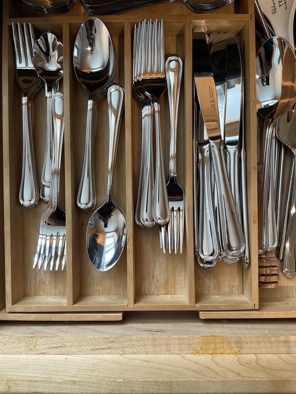 This is my second set of this flatware; I’ve had the first set for 5 years and while it’s still beautiful, pieces get lost or misplaced as often happens. I bought another 12 piece set and augmented my current set with half of it, keeping the rest in reserve. Strong (doesn’t bend) shines beautifully.