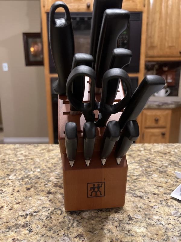 Great knife set! We gave our Henckels knife set that we had for 15 years to our daughter to try the Zwilling set. They have a comfortable, sleek feel that my wife likes. Looking forward to another 15+ years with this set.