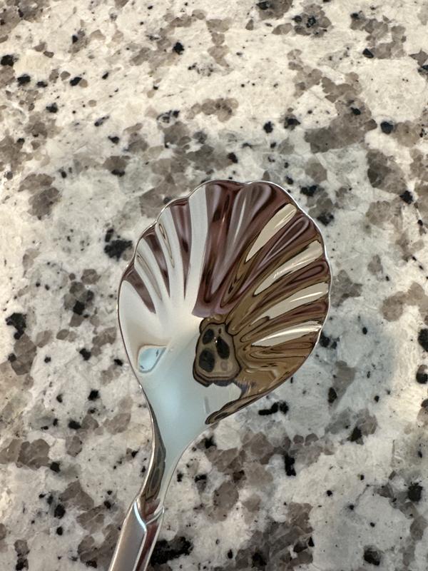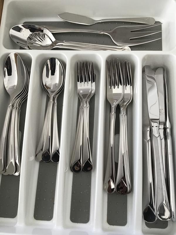 On sale this 8-piece setting with serving pieces was a wonderful bargain. With 18/10 stainless the shine is unbelievable, and easily survives regular diswashing. This style made my husband and I both happy, even though I favor modern sleekness and he prefers colonial tradition. I love the blend of satin and shine. The knives in this set will do serious cutting as they are serated; the knife handles are heavily weighted and pleasant to hold. On the other hand the other setting pieces seem oddly lightweight and with short-ish handles. The variety of serving pieces are a wonderful addition. So, not 5-star but a beautiful set which we are putting to immediate daily use. My old 18/0 Oneida set was ready for the graveyard.