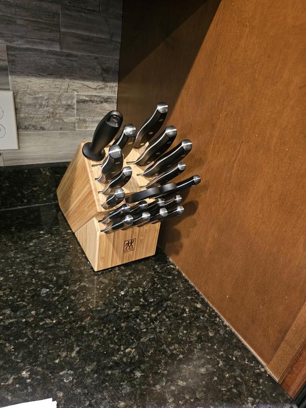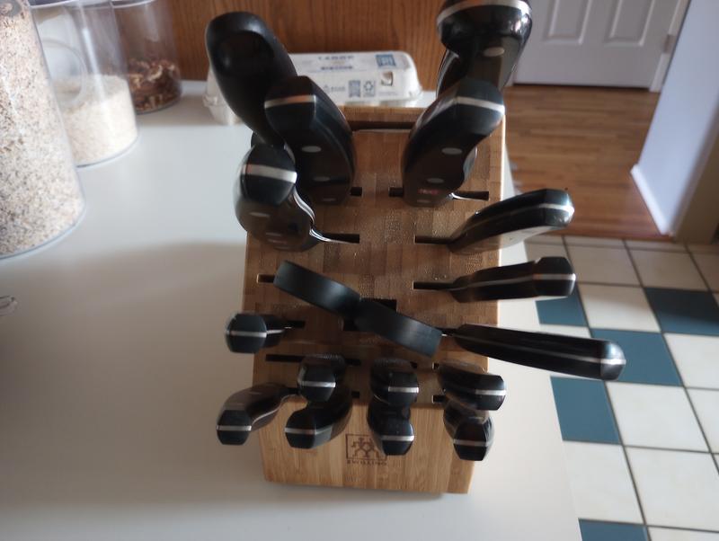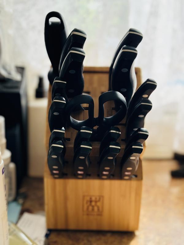 My first knife and block set - excited to keep using it! The knives are very sharp and love that there's enough for at least 6 guests to use.
