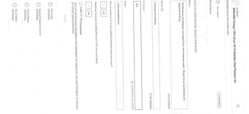 Customer review from Zwilling.com
