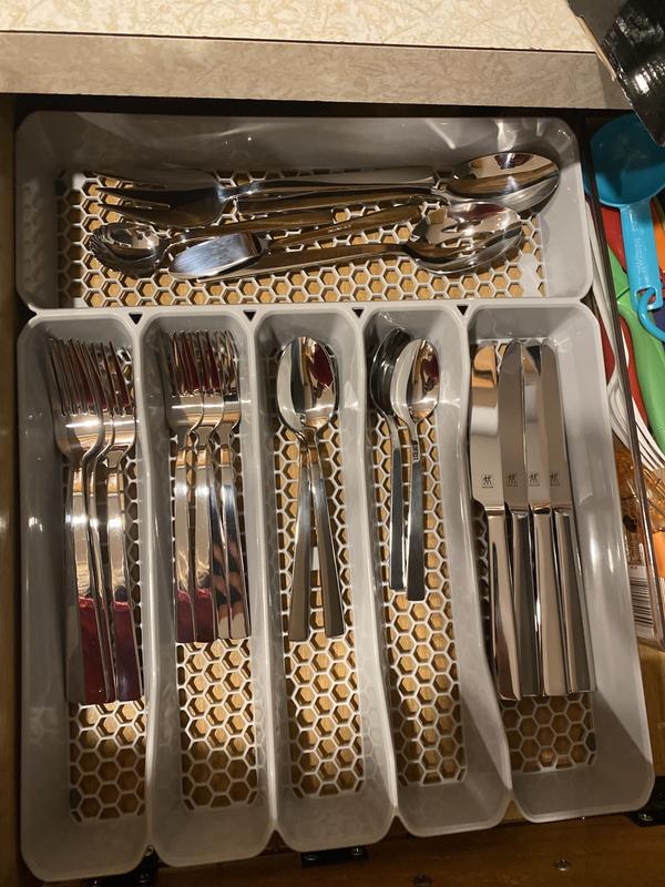 The flatware is an interesting color, almost mirror like, however the utensils are not as heavy as I would have liked. I’ve purchased better quality flatware in the Macy’s store but unfortunately this home is too far from away from any stores. Certain products necessitate seeing and feeling in person.