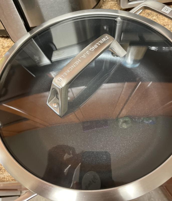 I have a small Zwilling fry pan without a lid that I use for everything. I decided to buy a larger one with a lid. This pan is great for everything from large omelets to one dish meals. It’s easy to clean and continues to look new no matter how long it use it.