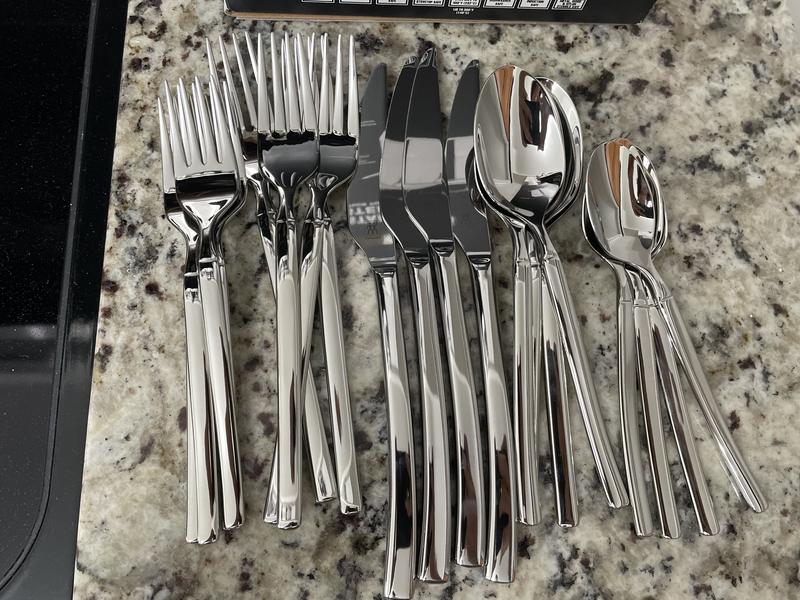The set is very attractive and at first I thought it was a great buy. However, the handles are too thin, almost like chopsticks and are awkward to hold when eating. The teaspoons are too short and short handles mean when you stir a mug of coffee your fingers wind up in the drink.. Again, pretty but not practical.