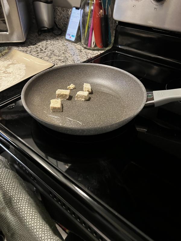 I have multiple frying pans but to clean them I must use elbow grease. My husband complained each time he used one, now he's elated with our Ballarini Parma Plus 2 piece Granitium nonstick fry pan set.