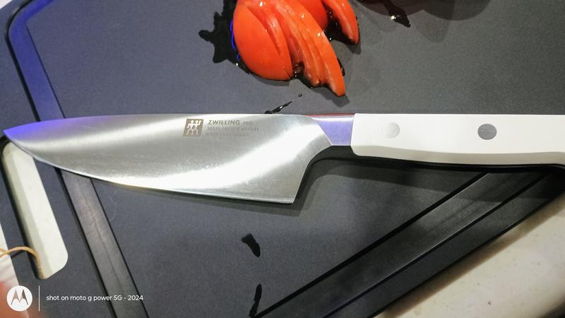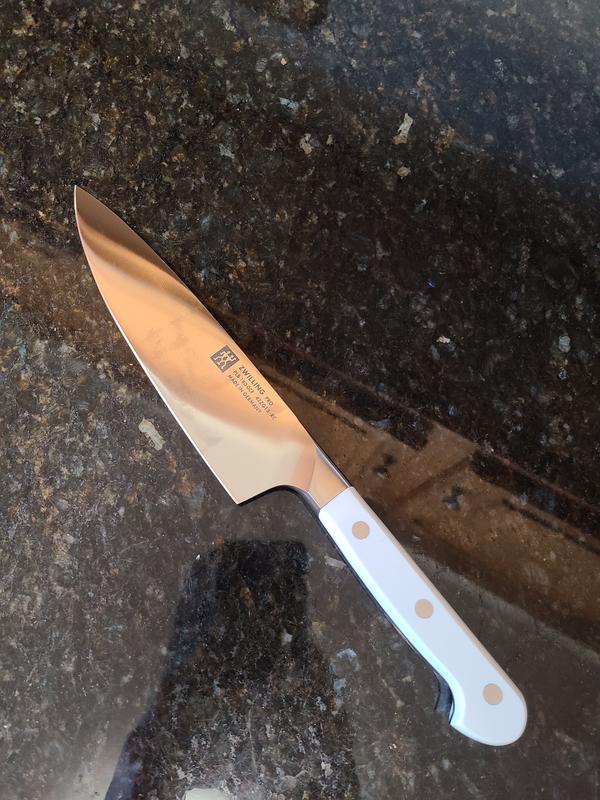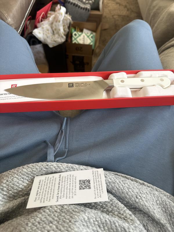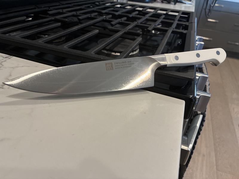 Typical Zwilling quality, performance and dependability. Appreciate the weight and thin blade of the slim chef knife. The white handle is also a nice change.