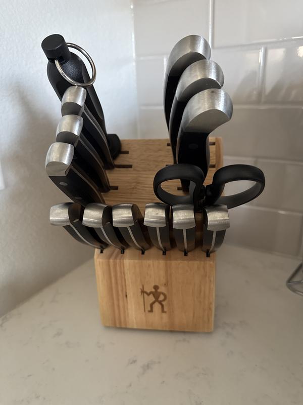 I was researching a knife set for our wedding registry and my friend told me about Henckels. These knife’s are fantastic! Very sharp, nice to look at, the handle is non-slip and easy to grasp, and they have a lifetime warranty! This is my first, and hopeful only, knife block set and I’m happy I went with Henckels!