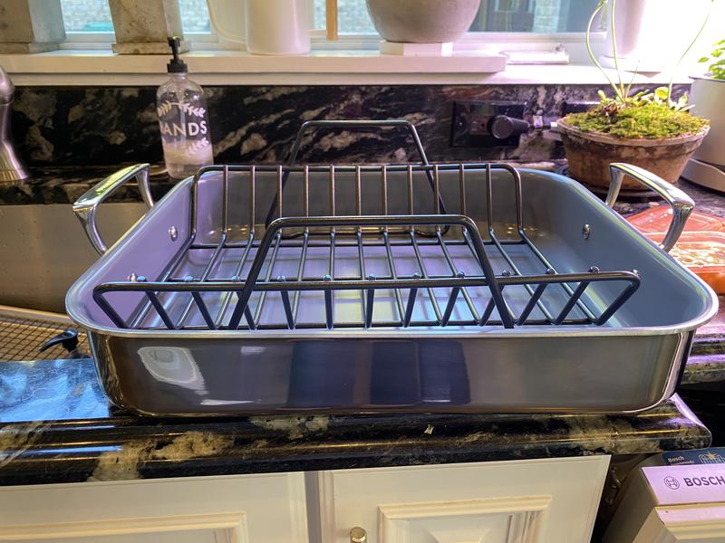 I've had a few lower quality roasting pans and always labored to clean them up properly. I upgraded to this one and I'll never look back. The pan almost cleans itself with just the spray from a faucet - it's shockingly impressive. On top of that, the gaps in the grates are perfectly spaced - I've never tasted better roasted food.