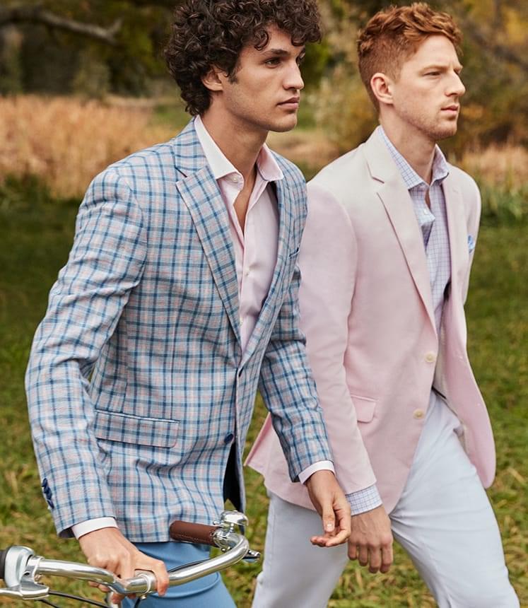Here’s your first look at the style upgrades to make for spring. You ready? Let’s get to it. Navy, navy, navy. Just remember that, OK? You’ll want suits and dress shirts in this neutral hue. And speaking of neutrals, you’ll want to stick with the blue mood for shoes and also invest in brown shades, as well. You know our goal is to dress you in the best and that’s always the theme. From track jackets to hoodies to tapered leg jeans, our styles all begin and end with the perfect fit.